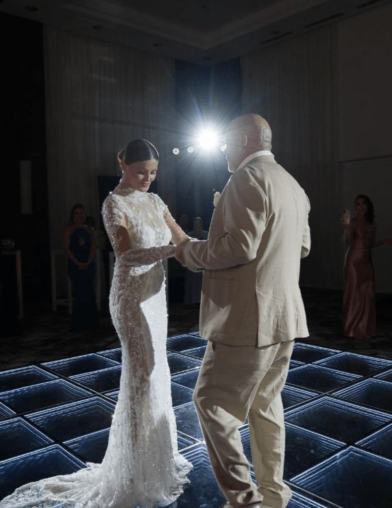 The ceremony took place at Le Blanc Spa Resort on January 26, 2026, following their earlier Las Vegas wedding on January 3. Guests at the Cancun event wore coordinated neutral tones, with tan, white, and champagne outfits that matched the wedding’s soft beachfront aesthetic. Angie, a nurse, wore a mermaid-style couture gown designed by Galia Lahav, later changing into a more casual dress for the reception’s afterparty.
